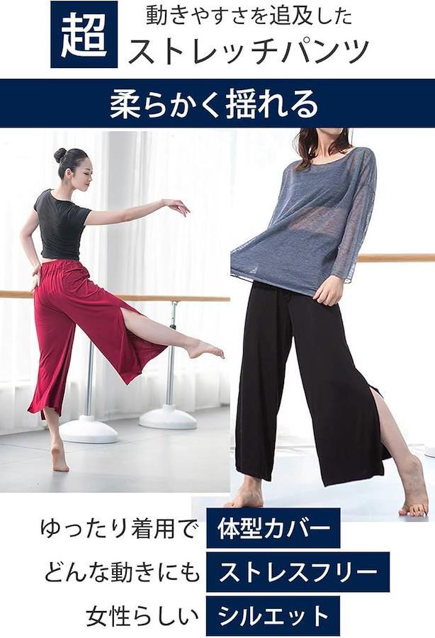 ヨガやティラピスなどスポーツで体を動かすのに最適なフレアパンツです。