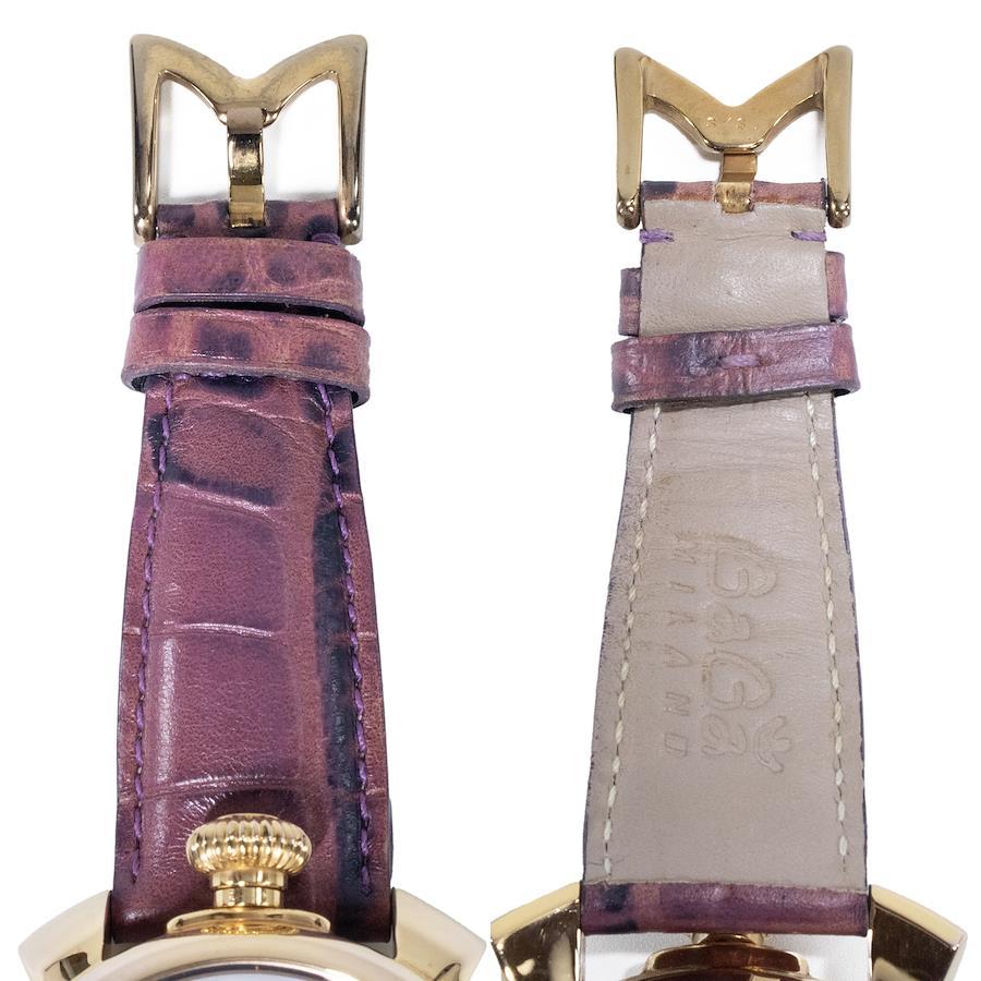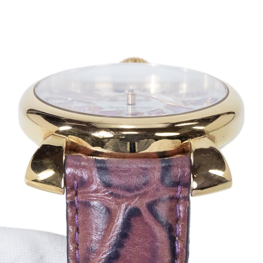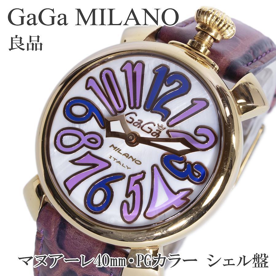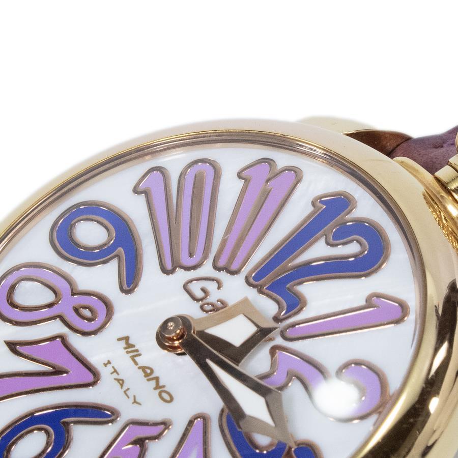 こちらはシェル文字盤が、虹色の輝きで腕元を彩ってくれる、ガガミラノの腕時計でございます。