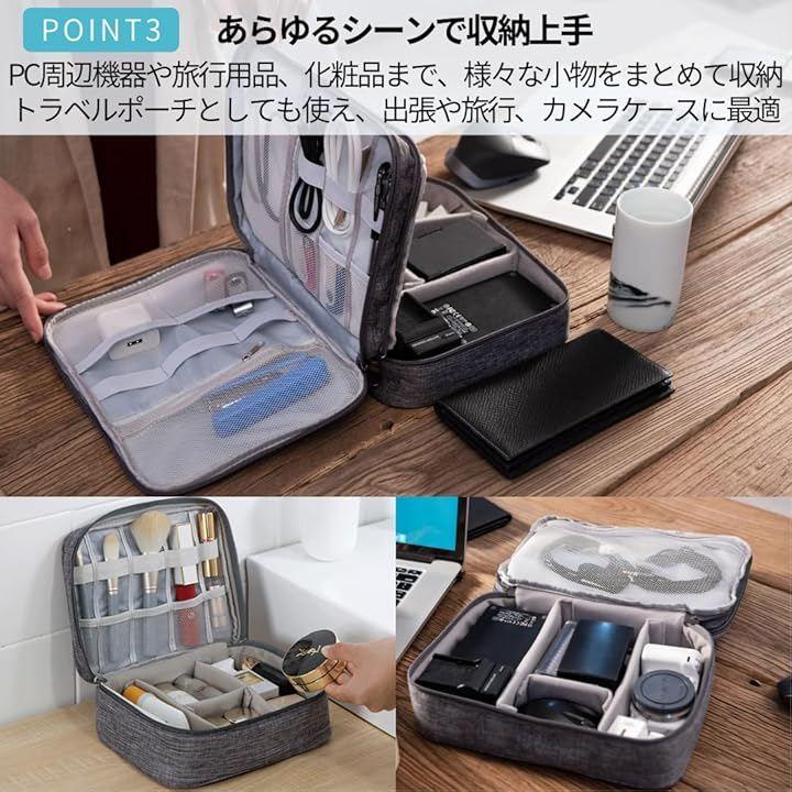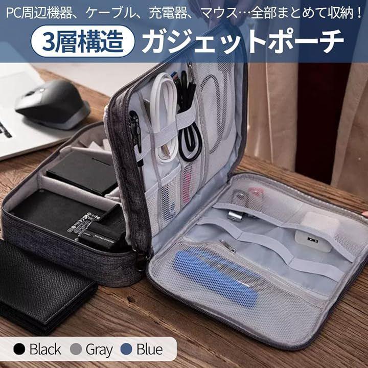 「もう散らからない。探し物ゼロへ。」PC周辺機器、ケーブル、充電器、マウス…全部まとめて収納。大容量ガジェットケースは3層構造で仕分けも楽々。