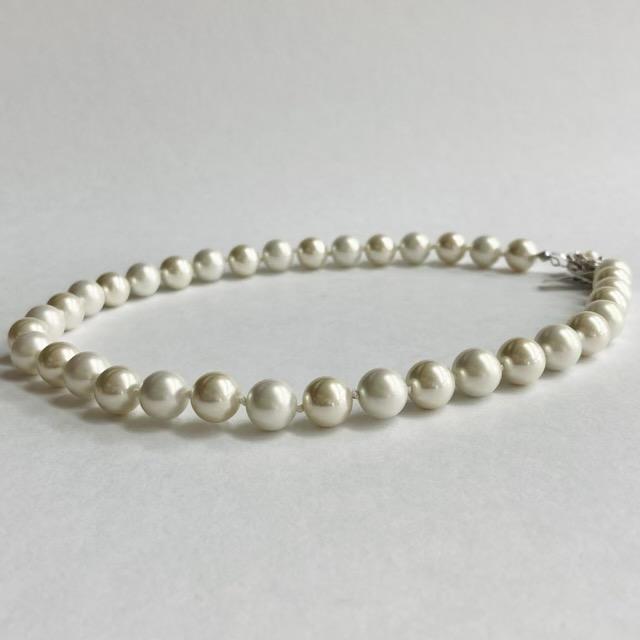 ガラスパールall knotネックレス/10mm約43cm/ホワイトmix/made in japan