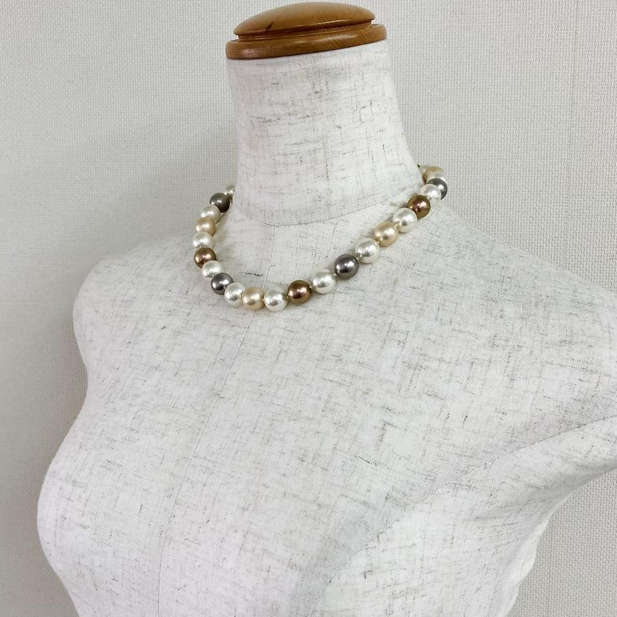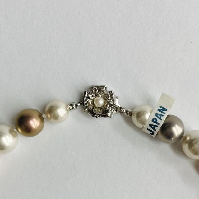 パールは当店のオリジナルカラーパールで、複数の異なるカラーをランダムに使用しております。※原玉にはピンホールや小さい凹み等が見られる場合がございますが、自社にて検品の上許容範囲とさせて頂いております。