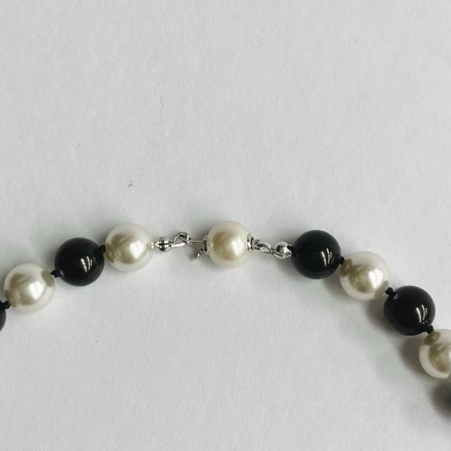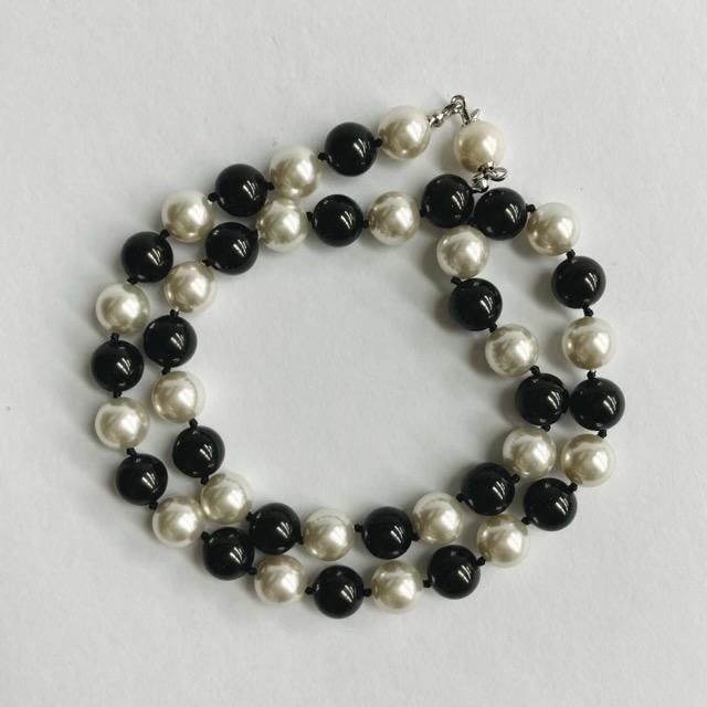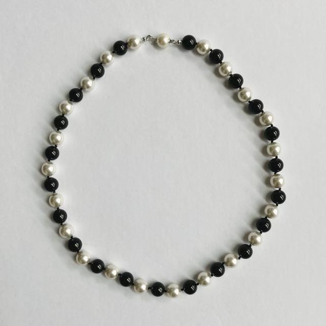 ガラスパールall knotネックレス/8mm約42cm/ブラック&ホワイト/R/made in japan