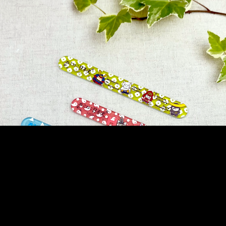 ボヘミアングラスで有名なチェコのガラス製爪やすりにかわいい「ねこねこ日本史」のキャラクターをプリントしました。