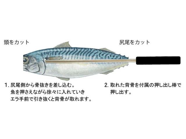 ■直径×長さ:サバ骨抜き:全長 275mm パイプ径 Φ10mmサバ通し:全長 390mm パイプ径 Φ2mm
