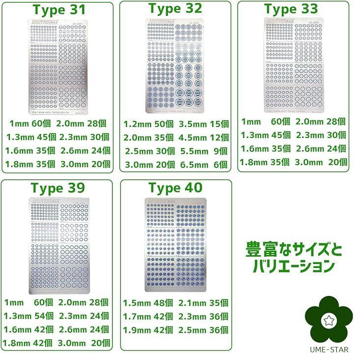 1つのシートに多くの種類、大きさのパーツがありますので、ご確認の上タイプを選択してください。