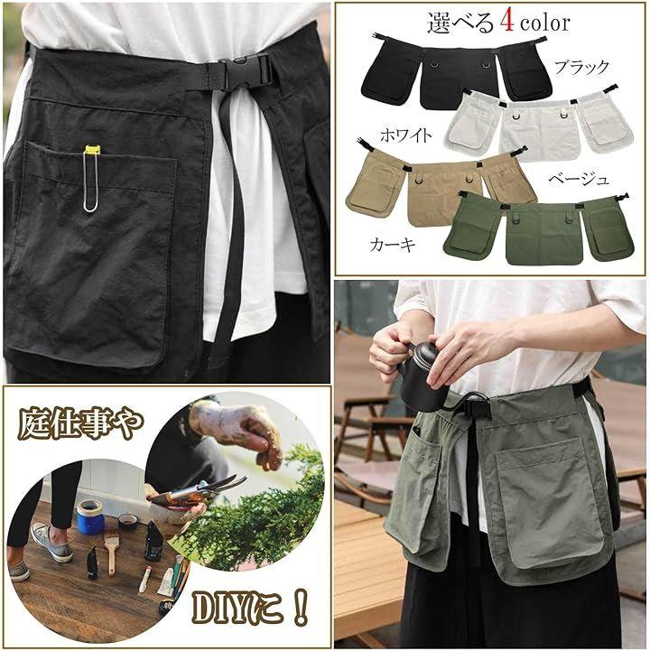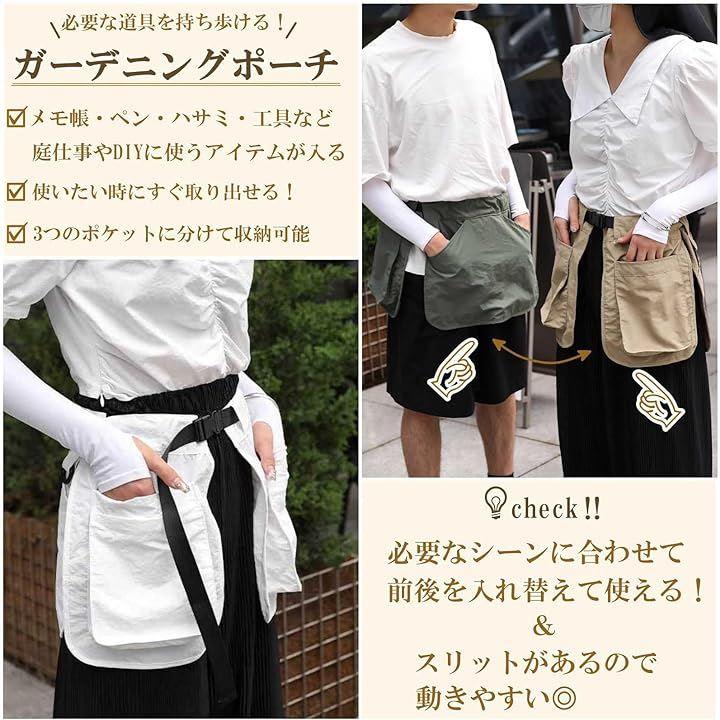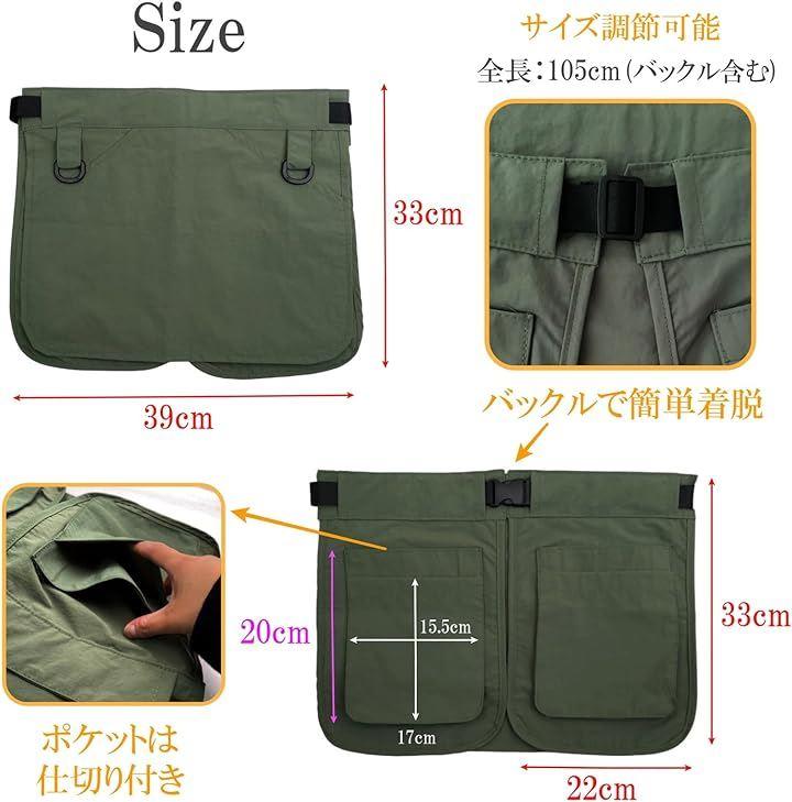 大ポケットを前面にするとショートエプロンスタイルに、小ポケットを前面にすると必要な道具をすぐに取り出せるので作業効率アップ。
