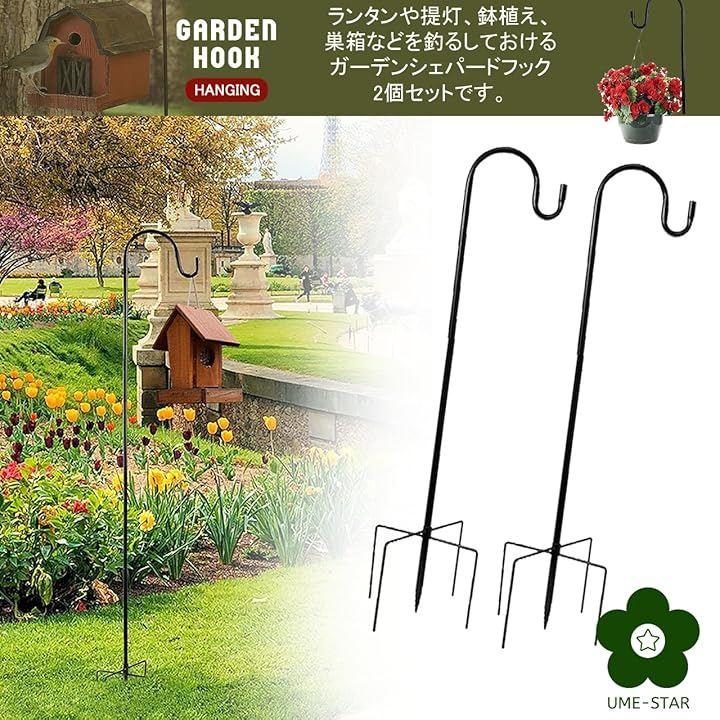ランタンや提灯、鉢植え、巣箱などを釣るしておけるガーデンシェパードフック2個セットです。