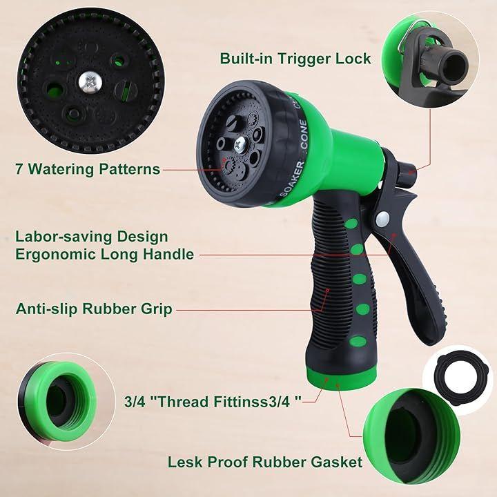 7つの調節可能な散水パターン:注意深く選ばれたパターンにそれぞれ独特な目的があり、各スプレーパターンはあなたの水遣りの必要性のすべてを満たす。