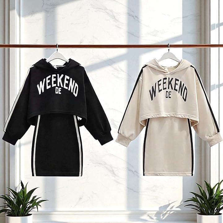 可愛いへそ出しパーカーとロングタンクトップの2点セットで着脱も簡単。トップスとノースリーブワンピの上下セパレートなので、お持ちのスカート、パンツ、ジーパンやTシャツ、ジャケットなどとのコーデも楽しめて着回し力抜群です。
