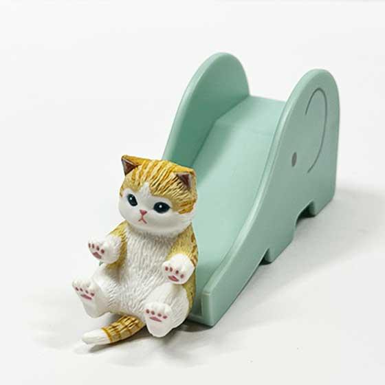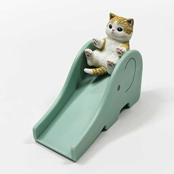 ■発売日:2023.5■メーカー名:キタンクラブ■商品名:すべり台にゃんこ■セット内容:ちゃしろ&みどりのすべり台■価格:750円■サイズ:すべり台全長約61mm■素材 ねこ:PVC すべり台:ABS■備考カプセル無しミニブック1枚付