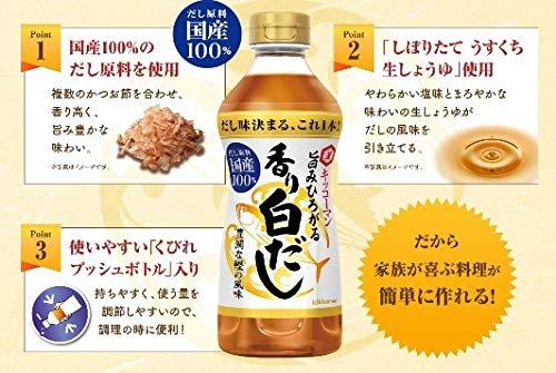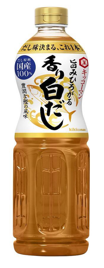 かつお節の豊かなだしの香りと旨みが特長の白だしです。塩味まろやかで素材の味・色を活かし、だしの効いた料理が手早く仕上がります。持ちやすく、量の調節が簡単な「くびれプッシュボトル」で使いやすさにもこだわりました。【だし原料国産100%】の上質な味わいを堪能いただけます。