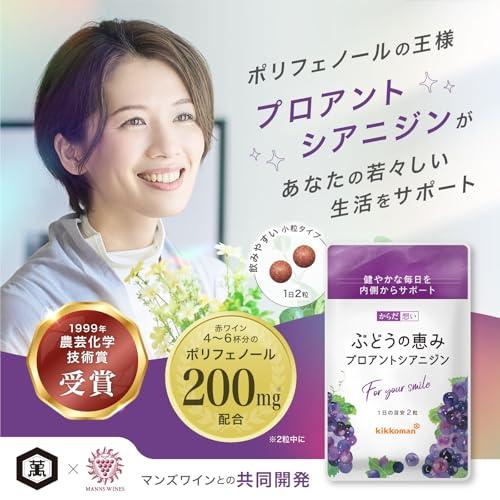 ??約1ヶ月分(30日分) 60粒 ??「ぶどうの恵み」2粒で、赤ワイン4~6杯分のポリフェノール! ??TVでも話題になった、ぶどうの種に含まれるポリフェノールの王様・プロアントシアニジンを200mg配合。 ??キッコーマンが自信を持って開発した製品。 ??運動後に、どうも年齢を感じる… ??あの日の透明感を取り戻したい…