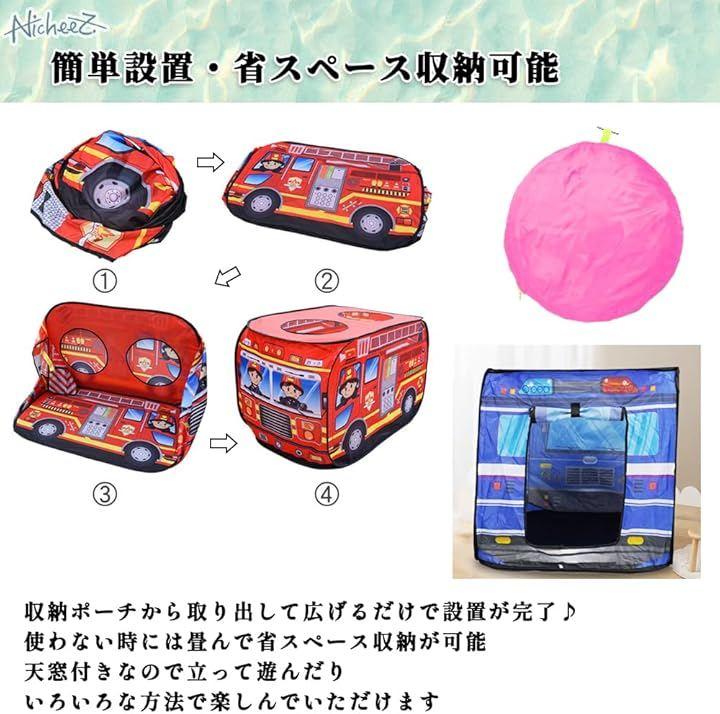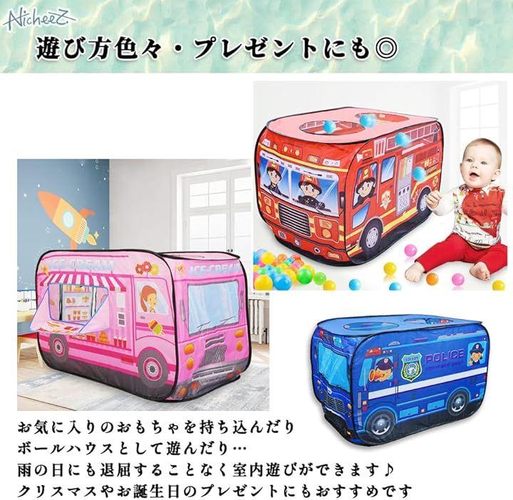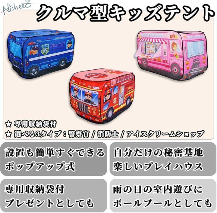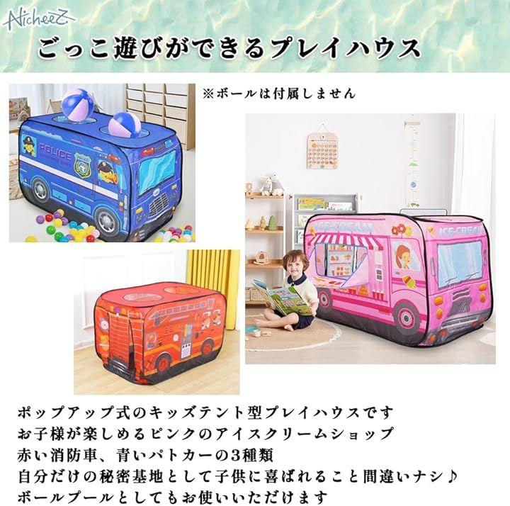 お子様が楽しめるピンクのアイスクリームショップ、赤い消防車、青いパトカーの3種類。