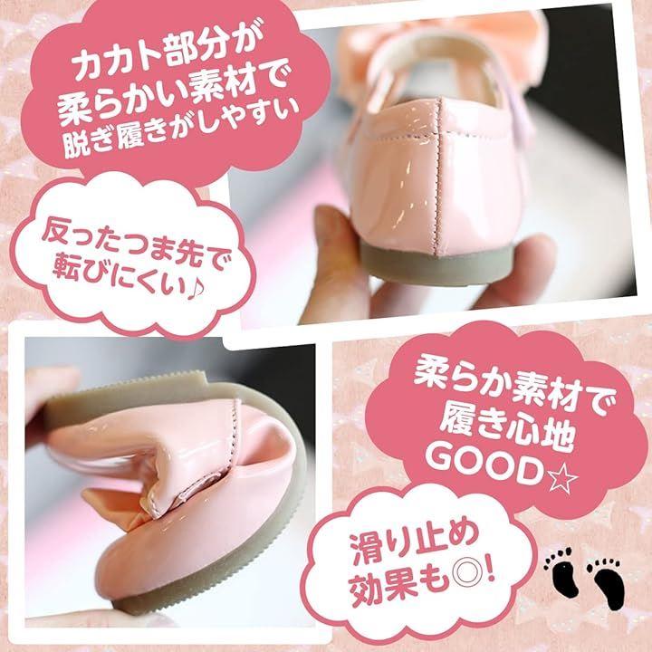 「 ドレスアップスタイル 」 可愛いリボンと特別感のある光沢がある子ども靴はフォーマルやワンピース、ドレスなどにぴったり。