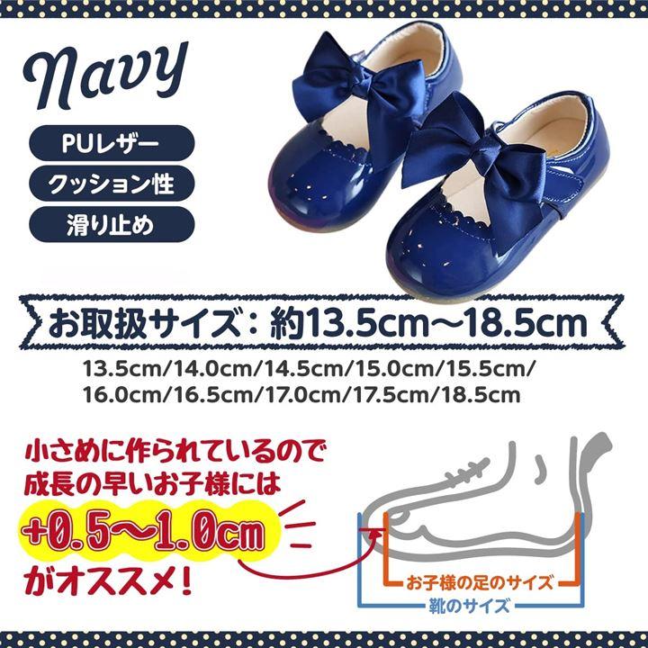 「 ドレスアップスタイル 」 可愛いリボンと特別感のある光沢がある子ども靴はフォーマルやワンピース、ドレスなどにぴったり。