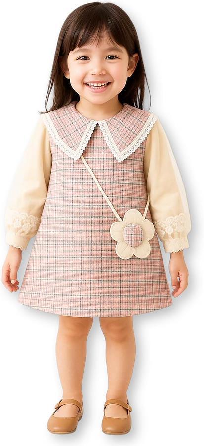 チェック柄ワンピ : やわらかく上品なデザインの長袖キッズワンピースです。