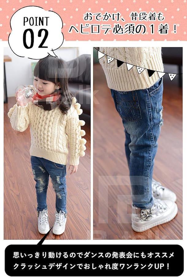 しっかりとした色落ち感、ダメージ加工が施してあり大人顔負けのおしゃれジーンズです。