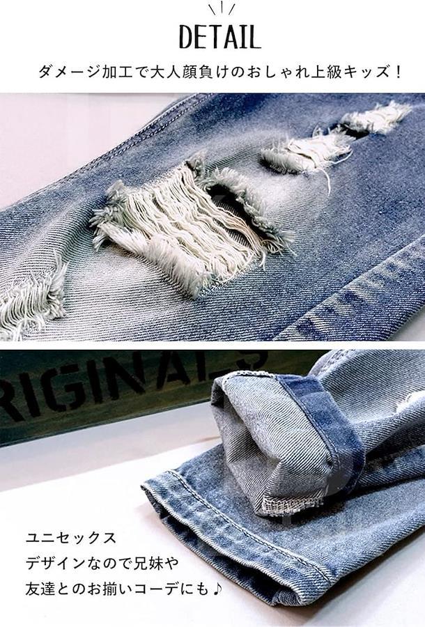 しっかりとした色落ち感、ダメージ加工が施してあり大人顔負けのおしゃれジーンズです。