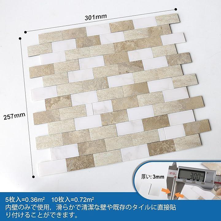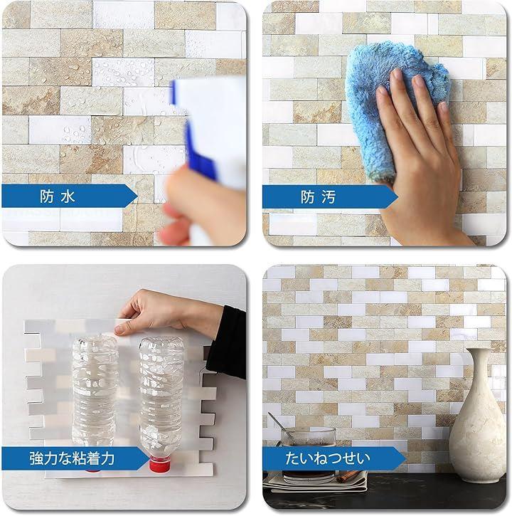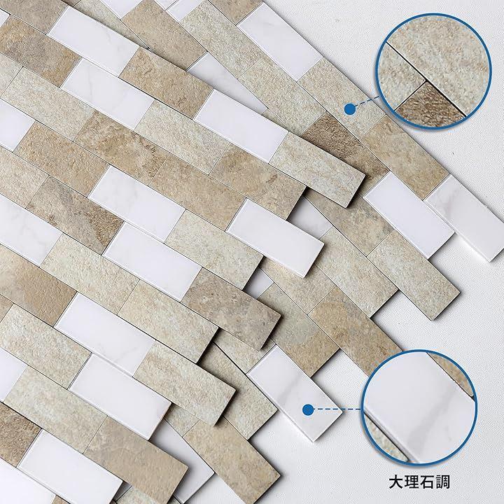 剥がして貼るだけ。目地材不要。簡単にカットもできて。時間とコストを節約。室内壁面装飾用:玄関,台所,洗面所,キッチンや洗面台のバックスプラッシュ(はねよけ)のデコレーションにもピッタリ。