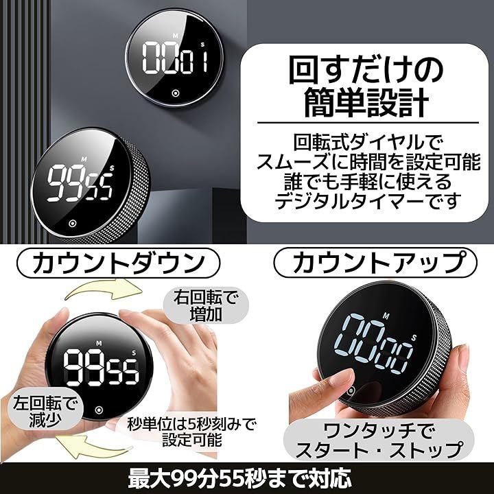最大99分55秒のカウントダウン&カウントアップ対応で、誰でも手軽に使えるデジタルタイマーです。