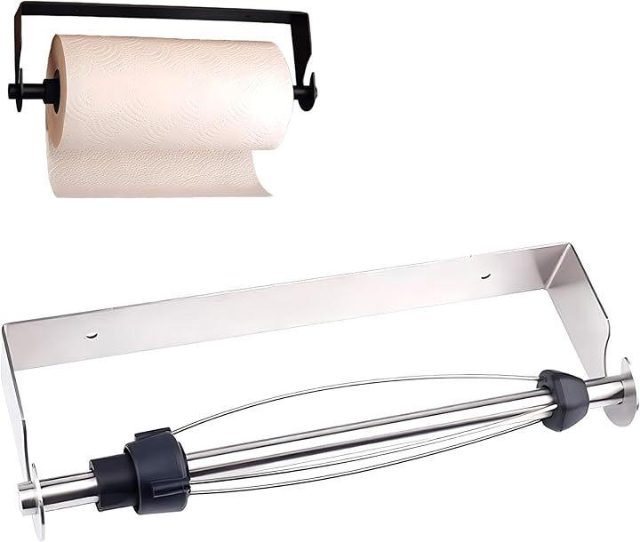 「製品情報」キッチンペーパーホルダー カラー:ブラック・黒 シルバー・銀 サイズ:302mmx103mmx40mm 付属品:両面テープ+取り付けネジ