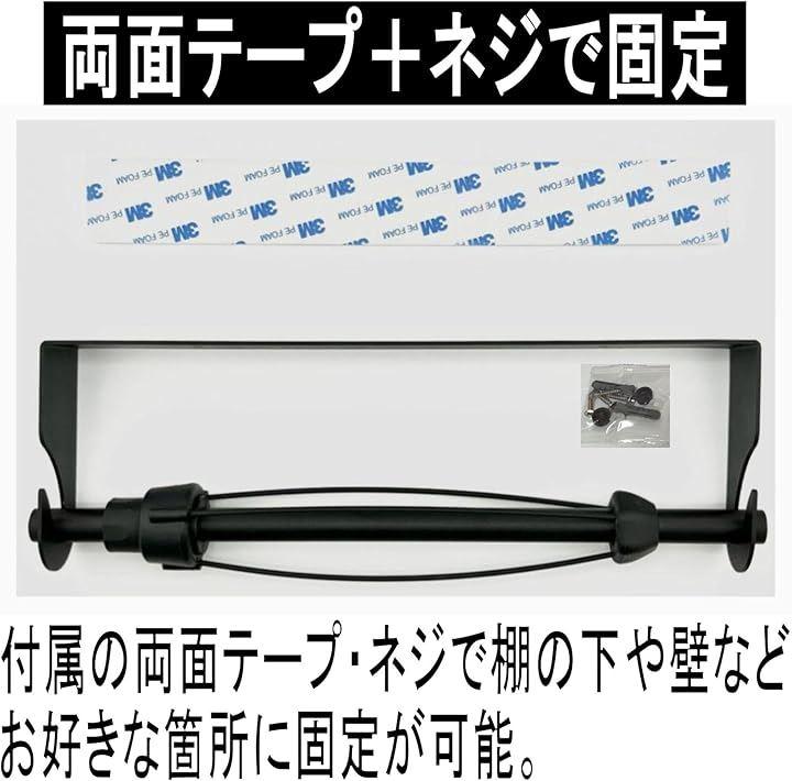「両面テープ+ネジでしっかり固定・ストッパー付き」両面テープ+取付ネジでしっかり固定でき、強めに引っ張っても倒れにくい設計となっています。