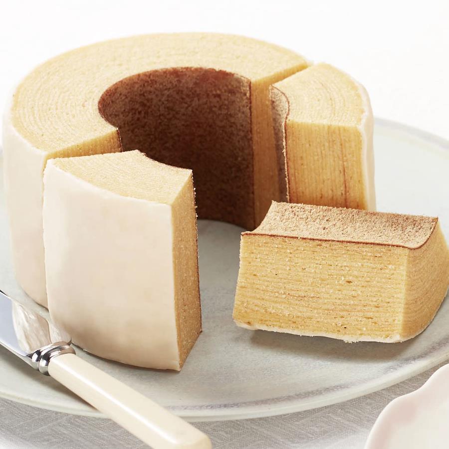 パティスリー キハチのバームクーヘンは“厳選した素材”と“しっとり焼き”が特長です。 一枚一枚、焼きながら巻き上げていくその層は、年をかさねていく木の年輪のよう。 絶妙なタイミングで弾力のある生地に仕上げました。きめが細かくしっとりとした口あたりをお楽しみください。【箱のサイズ】 ?173×94mm【重量】588g【賞味期限】 出荷日含め30日 【特定原材料】 小麦・卵・乳【保存方法】 直射日光、高温多湿の場所を避けて保存してください。