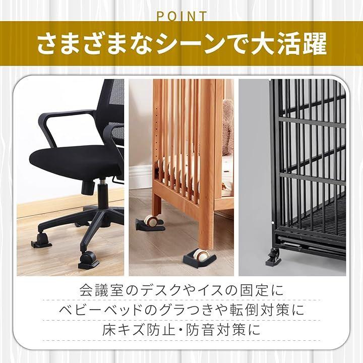 「さまざまなシーンで大活躍」会議室のデスクやイスの固定に/オフィスチェアやワゴンのズレ防止に/台車やキャビネットの固定に/ベビーベッドのグラつきや転倒対策に/地震対策に/床キズ防止・防音対策に