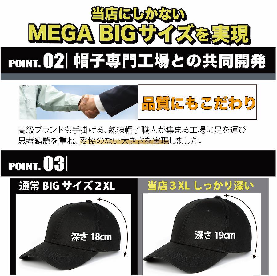 特大サイズ 3XL(64-70cm)で抜群の装着感。つば長め(8cm)幅広め(外周22cm)で、こめかみが痛くない。計算されたフォルムによる小顔効果。国内検品・日本販売店