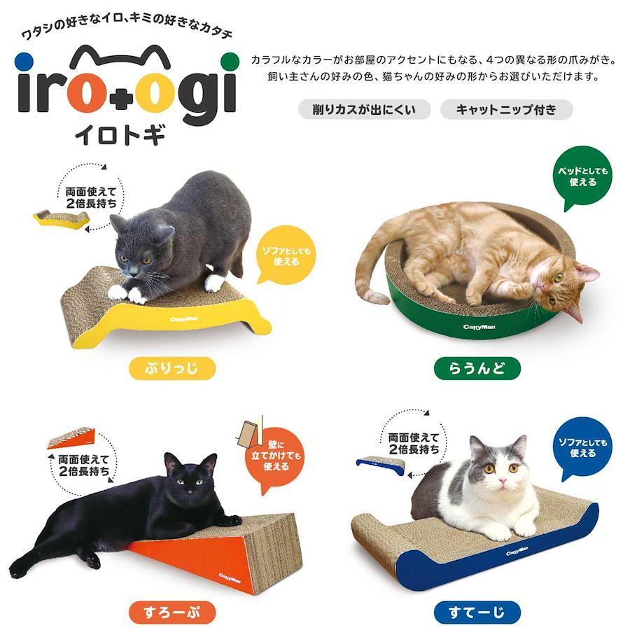 カタチと色で選べて、両面使えてベッドにもなる猫のダンボール爪みがき。