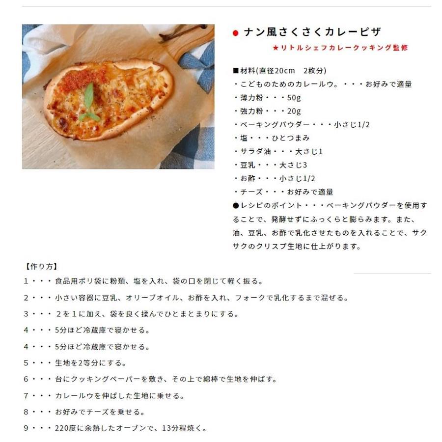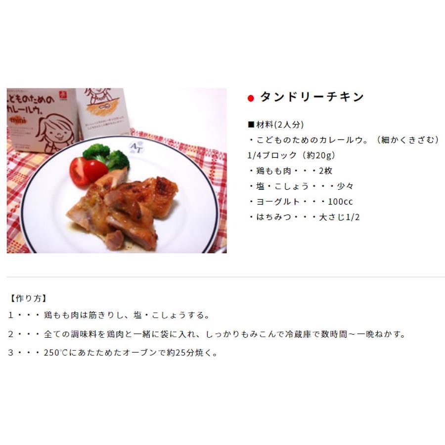 おいしいこどもカレーの作り方 (材料:6皿分) カレールウ150g、ひき肉200g、にんじん大1/2、じゃがいも大1/2、たまねぎ大1/2、サラダ油大さじ2、水750ml ①厚手の鍋にサラダ油を熱し、お子様が食べやすい大きさにカットした野菜とひき肉を入れて炒めます。 ②炒め終わりましたら水を加えて煮込み、沸騰したらアクをとり、材料がやわらかくなるまで煮込みます。 ③具材がやわらかくなりましたら、いったん火を止めてルウを割りいれます。完全にルウが溶けましたら、再び弱火でとろみがつくまで煮込んで出来上がり。