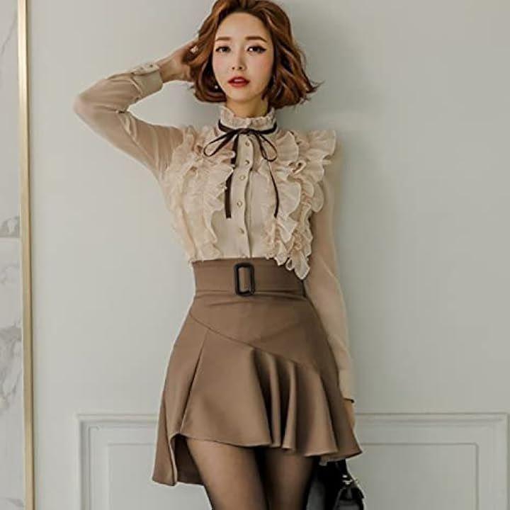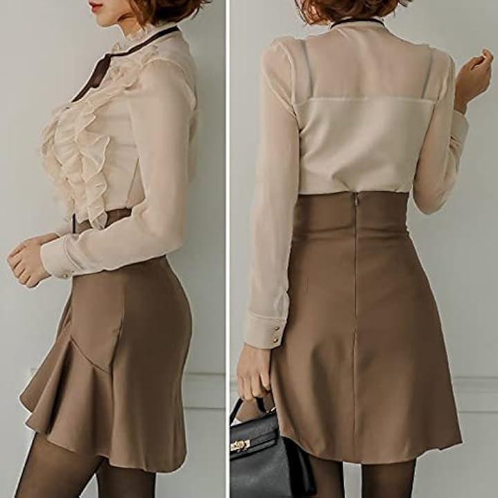 フリルブラウスと技ありハイウエストスカートで可愛らしさを追求したレトロでガーリーなワンピース、パーティドレスです。