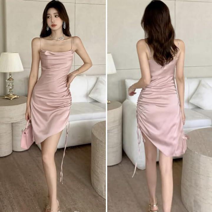 艶のある生地がエレガントな気分にさせてくれるワンピース、パーティードレスです。