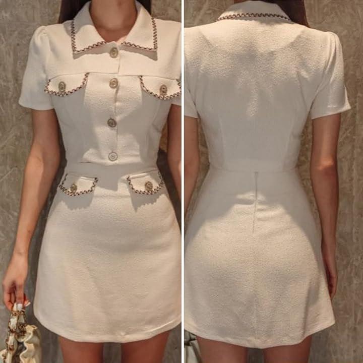 胸元のボタンが素敵な一着です。