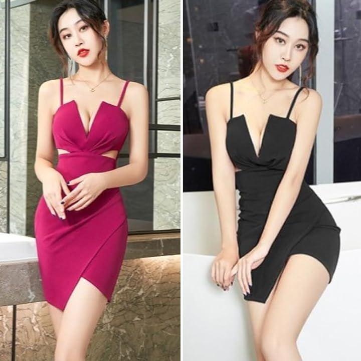 大胆なカットアウトで肌見せを楽しめる攻めのワンピース、パーティードレスです。