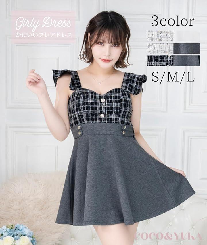 上品な作りのツイードフレアワンピースが新登場。フリル袖がフェミニンで可愛すぎ。 胸パッド付で透け感もなく、しっかりした生地で、左わき下にチャックも付いています。