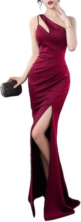 ロング丈と太ももまで入った大胆なスリットでゴージャスな女優気分を味わって。
