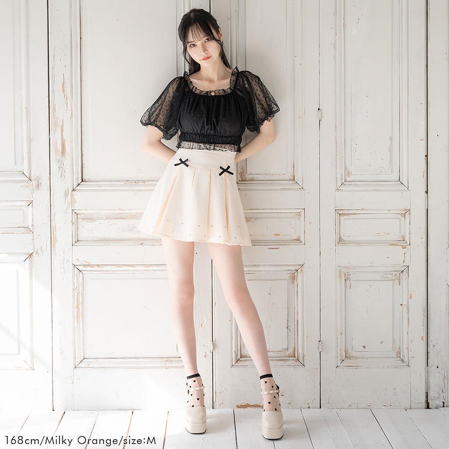 裾に施されたラインストーンが動くたびにキラキラし、トップスをインしてもアウトしても可愛くキマる一軍スカート。ラインストーンは貼り付けではなく打ち込みタイプなので、取れる心配もなく安心してご着用いただけます。シンプルながら所々にデザインポイントを施し、スタイリングのしやすさとデザイン性を兼ね備えた優秀アイテムです!ガーリーコーデにはもちろん、カジュアルなスタイリングにもおすすめです。季節問わずお使いいただけるマストバイアイテム!