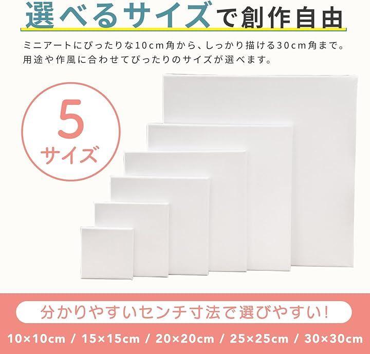 ミニキャンバスなどの使いやすいサイズも含まれ、飾る楽しさも生まれます。