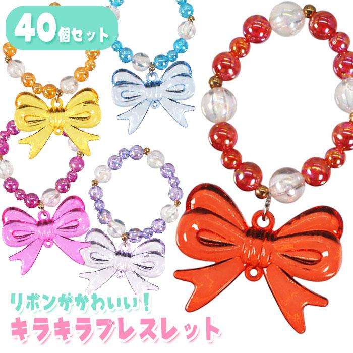 キュートなリボンとビーズがついたキラキラブレスレット!