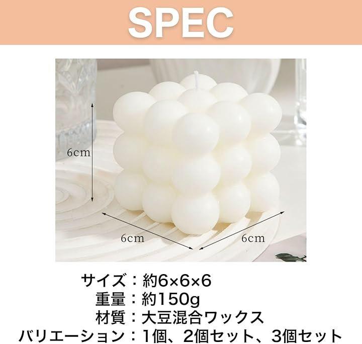 「商品仕様」サイズ1個 : 約6x6x6cm(重量 : 約150g)/ 材質 : 大豆混合ワックス *バリエーションは、単品1個、2個セット、3個セットがございます。