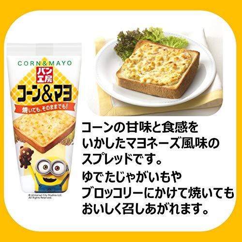 コーンの甘味と食感をいかしたマヨネーズ風味のスプレッドです。忙しい朝でも、手軽におうちで、大人にも子供にも人気の焼きたて惣菜パン【コーンマヨパン】が作れます。パンに塗って、お好みで焼くだけで、簡単にコーンマヨトーストが出来上がります。また、ゆでたじゃがいもやブロッコリーにかけて焼いてもおいしく召しあがれます。また、焼かずにクラッカーなどにのせてもおいしく召しあがれます。