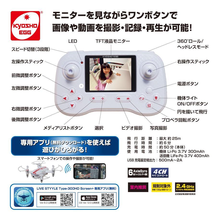 遂に登場!!モニター搭載型コントローラーのトイドローン!30万画素のカメラで、モニターを見ながらワンボタンで画像や動画を撮影・記録・再生が可能!カンタン離着陸機能やスピード3段階切り替えなどサポート機能も充実!Li-Po 3.7V 300mAhバッテリー、LiFePo 3.7V 300mAhバッテリー