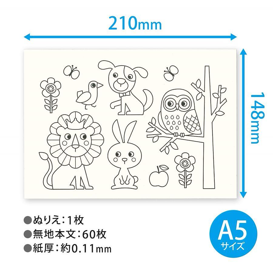 北欧調のオシャレでかわいい動物たちが表紙のおえかき帳。動物たちのぬりえ付なので子供たちも楽しく遊べる。クレヨンなどの色もきれいに映える白色度の高い用紙を使用。 【セット入数】 5冊 【罫内容】 無地 【仕様】 ぬりえ付き 【仕様】 ぬりえ付き 【仕様】 ぬりえ付き