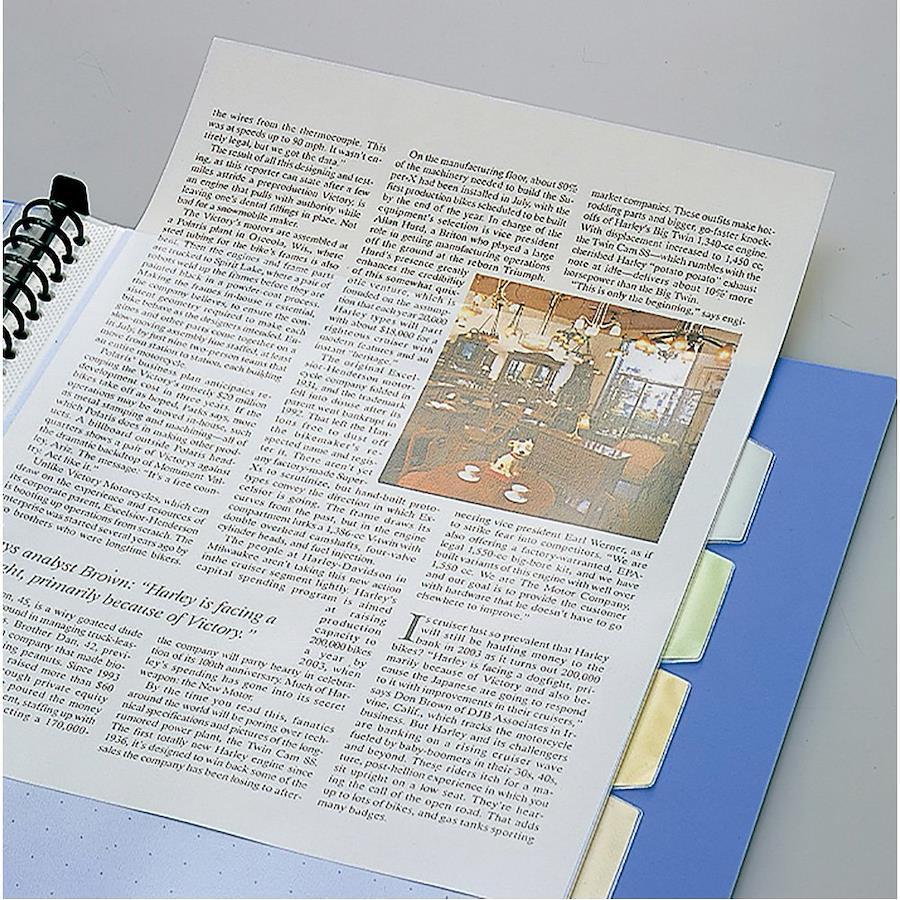 ポケットの追加が簡単なリング式ファイル。表紙と台紙を同系色でそろえました。ポケットの表面は光の反射やベタつきが少ないエンボス加工。台紙は、表紙と同系色で資料の貼り込みに便利なドットガイド付き。