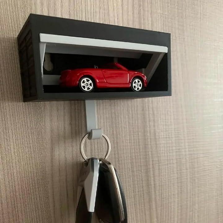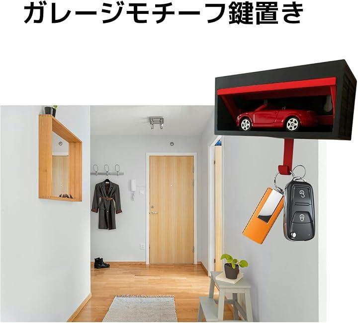 「ガレージ型の壁掛けキーホルダー」白x黒