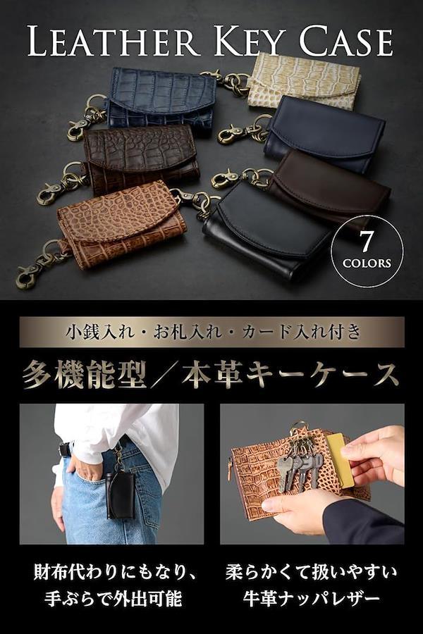 「多機能型本革キーケース」4連キーフックに小銭入れ、カード入れ、お札入れ、カラビナ、キーリングの付いた財布一体型のキーケースです。