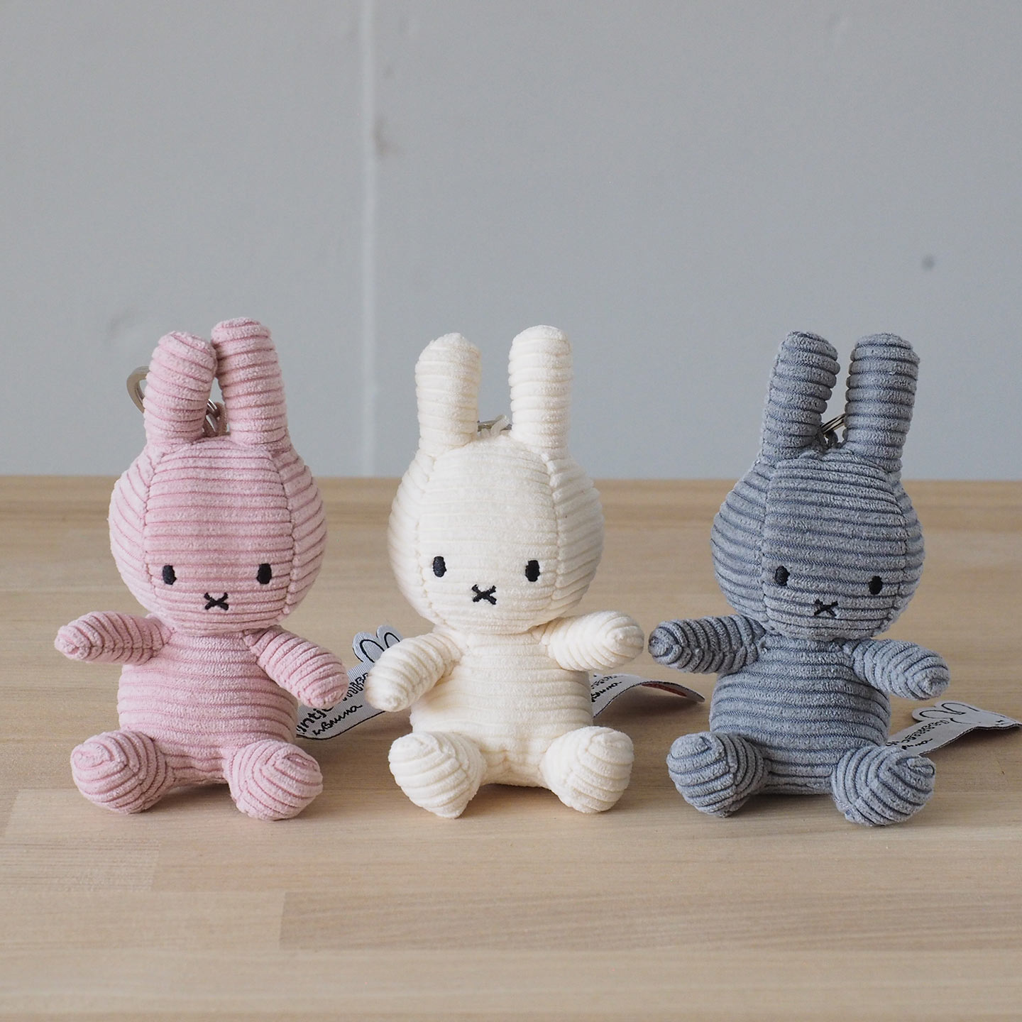 【ミッフィー コーデュロイキーチェーン】歴史あるオランダのぬいぐるみメーカー BON TON TOYS(ボントントイズ)。「ミッフィーコーデュロイ」は、かわいさと大人っぽさをあわせ持つ、豊富なカラーバリエーションが魅力のぬいぐるみです。キーチェーンは、手のひらサイズでカバンや鍵に付けても邪魔にならないコンパクトさが魅力。鍵の目印としてはもちろん、プチギフトにもぴったりで、日常にさりげなく癒しをプラスしてくれるアイテムです。