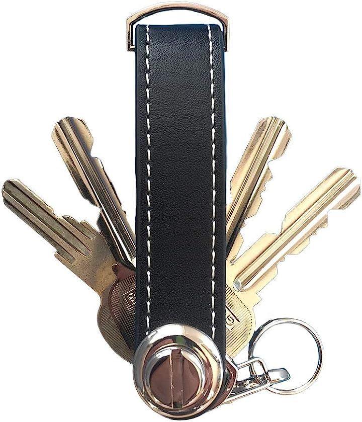 * キーホルダー マルチツール型 4カラー:「ブラック/ネイビー/ブラウン/レッド」 * サイズ 長さ:8.5cm 幅:2cm 高さ:2cm 穴の大きさ4mm以上のカギを収納できます * 上質なレザーで、金属音のする鍵を保護します * 手のひらに乗るコンパクトサイズなので、片手で簡単に操作できます * 付属品:拡張用シャフト2個(拡張目安:約1cm拡張し、鍵を12本収納) / スペーサー6枚(鍵と鍵の間のクッション) D管 S字カラビナ ダブルリング * 充実した、付属部品で、アレンジください。