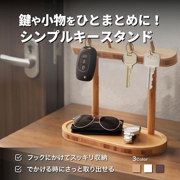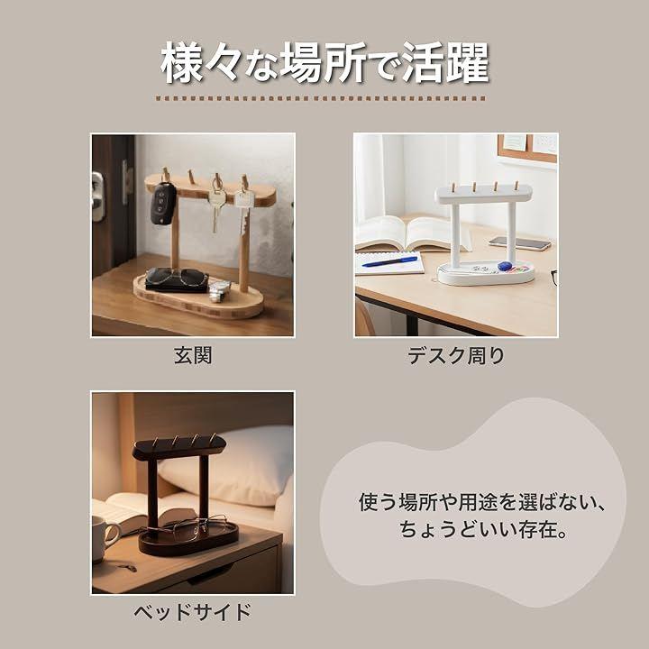「デザイン・形状」 天然木を使用した、フックとトレイを組み合わせた卓上スタンドです。